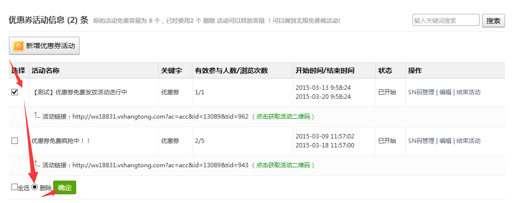 4、删除活动(最好是在最后兑奖时间过了,再删除活动)